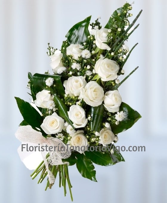 - Este fino y elegante Ramo 12 Rosas Blancas, trata de un ramo funerario realizado con elegantes rosas blancas o rosas rojas para condolencias, forman un aire de pureza con una elegancia especial. Según disponibilidad, puede ser un detalle funerario de rosas blancas o rojas. Las rosas para tanatorio serán muy especiales.